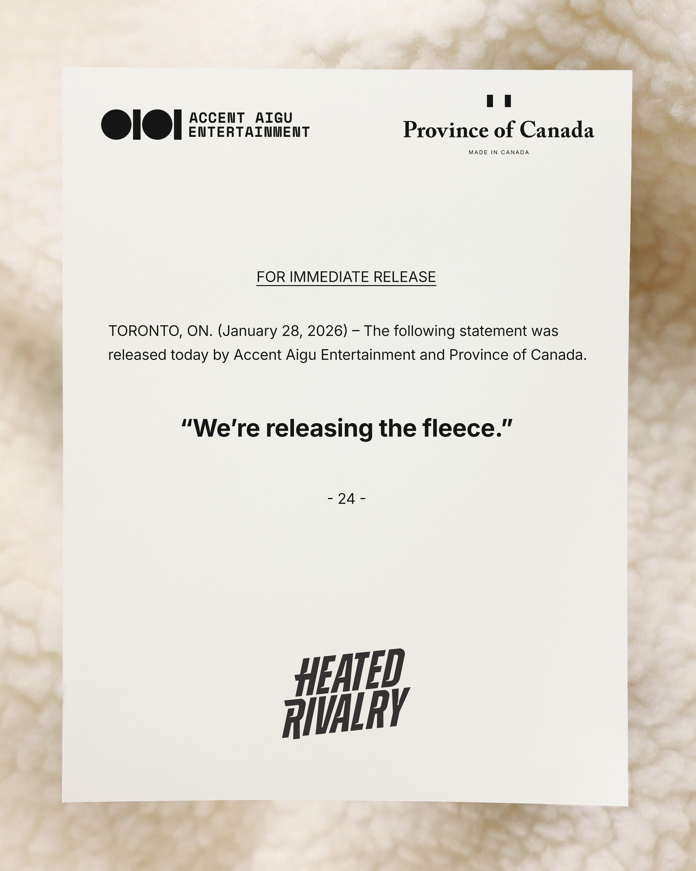 If you're looking for more information regarding The Fleece and the Province of Canada x Heated Rivalry partnership or have any media inquiries, drop us a note at info@provinceofcanada.com