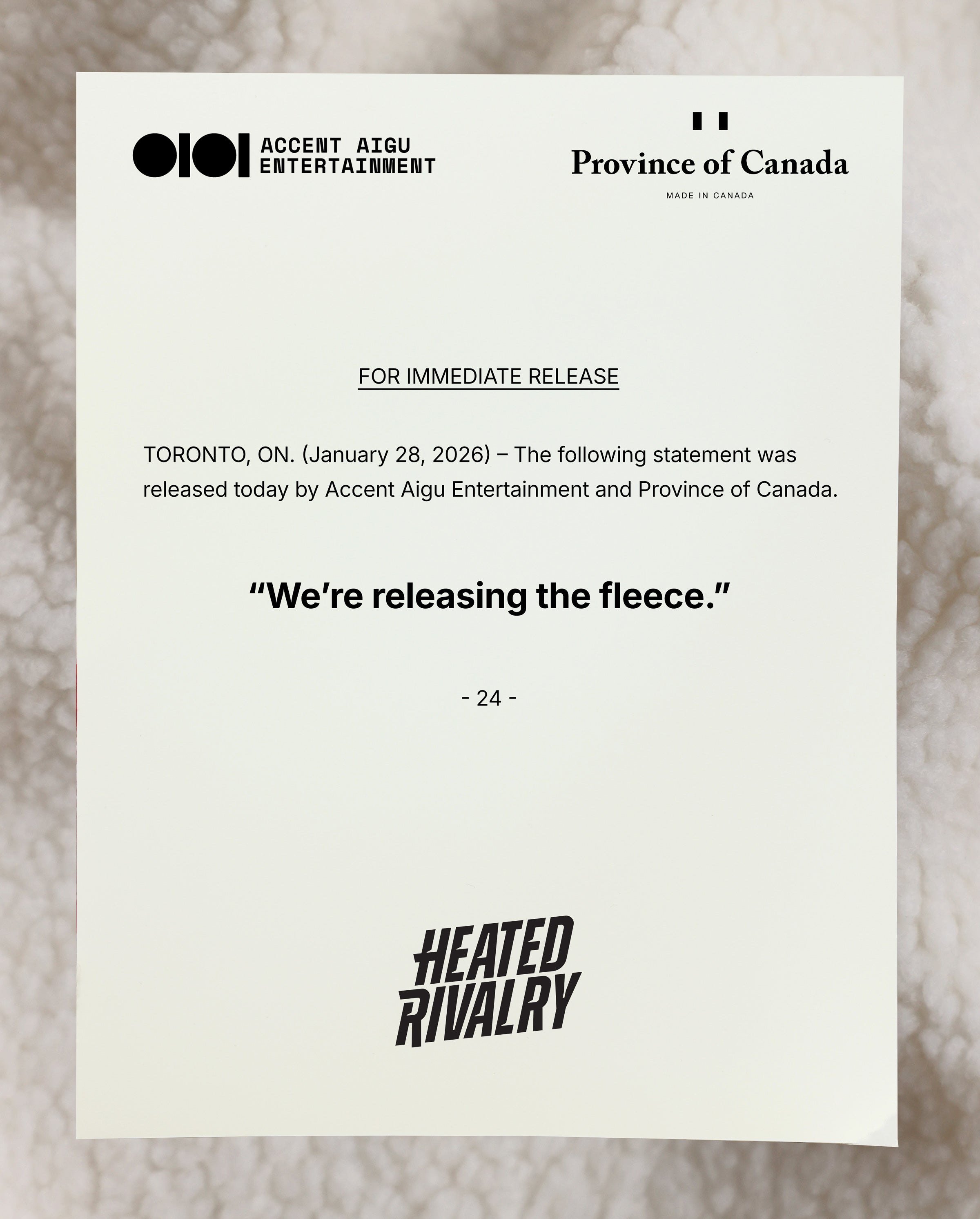 If you're looking for more information regarding The Fleece and the Province of Canada x Heated Rivalry partnership or have any media inquiries, drop us a note at info@provinceofcanada.com